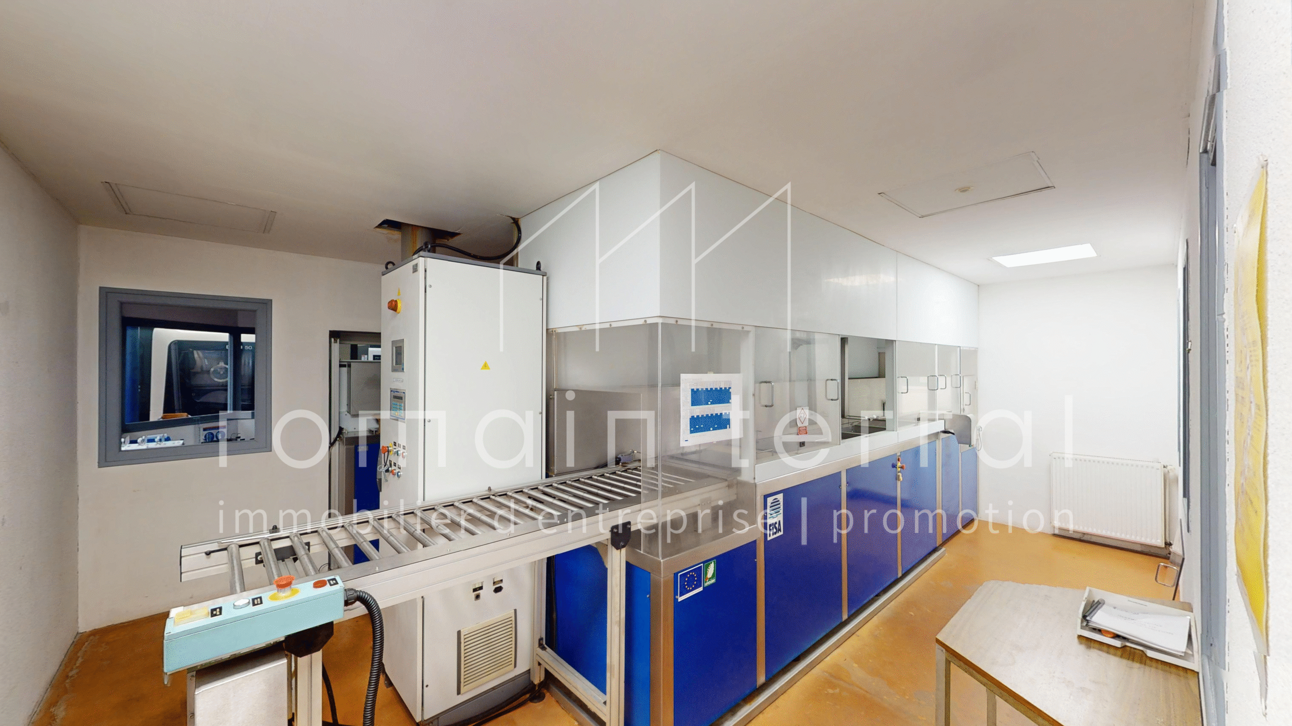 Cet atelier, chauffé au gaz, est composé d’une trentaine de pièces de toutes tailles: vestiaires, sanitaires, laboratoires, bureaux d’étude, stockage produits, local compresseur, local de cuisson, salle blanche ainsi qu’un grand espace de production.